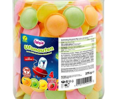Modellbezeichnung: Frisia Ufonauten, transparente Kunststoffdose 375 g Losnummer: LT23254P Mindesthaltbarkeitsdatum: 03/2025 Das betroffene Produkt wurden vom 28.09.2023 bis zum 14.12.2023 verkauft.