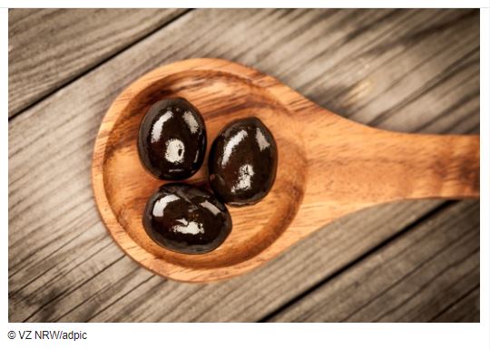 In der Gastronomie und bei loser Ware, beispielsweis auf Märkten, müssen diese Oliven klar als „geschwärzt“ gekennzeichnet sein. Bei verpackten Oliven im Supermarkt hingegen fehlt dieser Hinweis oft, sodass Verbraucher:innen vor dem Kauf die aufgeführten Stabilisatoren in der Zutatenliste genau studieren müssen. Durch die künstliche Schwärzung können hohe Acrylamidwerte entstehen, die gesundheitlich bedenklich sind. „Wer ganz sicher gehen will, kann zu schwarzen Bio-Oliven greifen. Bei diesen sind die Stabilisatoren nicht erlaubt. Auch Kalamata-Oliven sind für Verbraucher:innen auf den ersten Blick als echte schwarze Oliven erkennbar“, erklärt Hannah Zeyßig von der Verbraucherzentrale NRW.